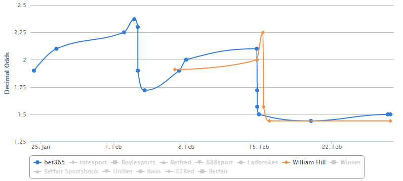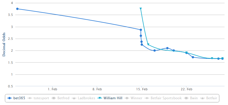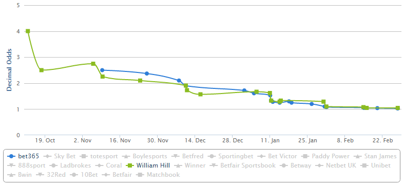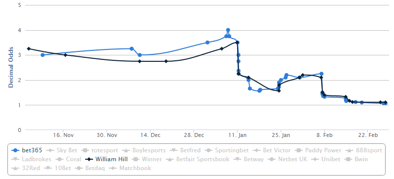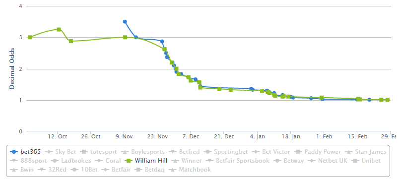 Similar price action can be seen on Larson’s chart for her performance in Room. There is really no room to maneuver here, given the shortest of short odds.