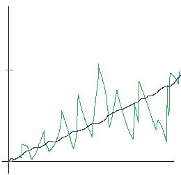 I have already shown how to trade in Betfair in simple steps and how to green up in Betfair in the end. In this article I will explain why greening up in Betfair will help our bankroll withstand the swings. I will consider 2 different betfair traders in this example who sit next to each other and they trade in exactly the same way. Their only difference in their trading style is that the first one ALWAYS greens up while the second trader never does. So, let’s assume they trade profitably in 100 races (exaggerating example of course). The first trader’s bankroll will increase in the following way: