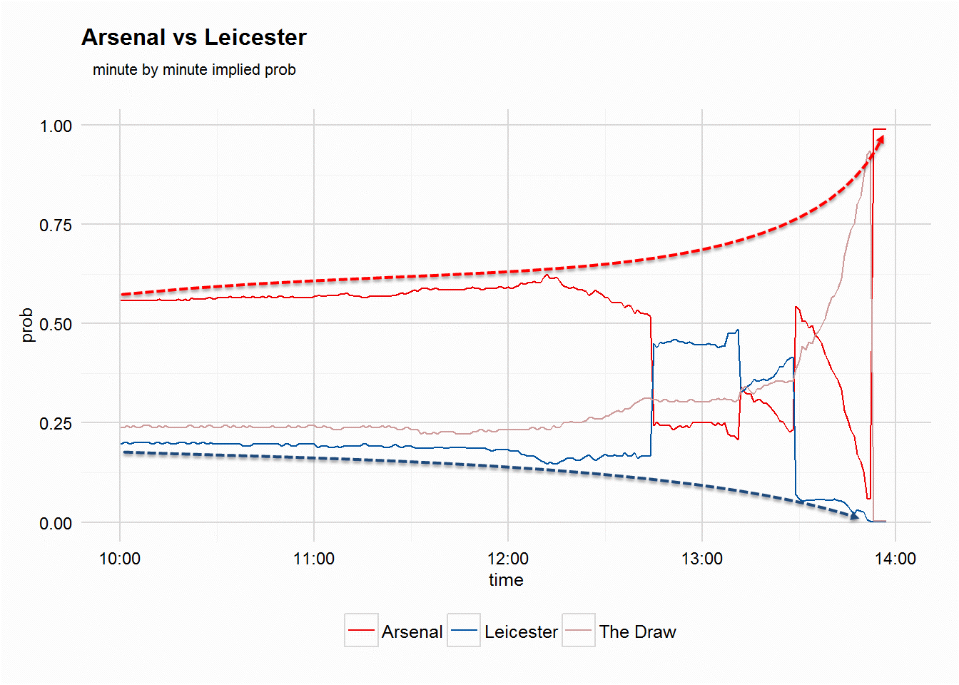 Let’s now take a closer look at the two GitHub’s charts. First, Arsenal vs Leicester (FT: 2-1):