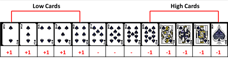 The point of this article is to show how unimpressive counting cards is. Add one for every low card, subtract one for every high card. If you counted correctly, the count should end to zero when the deck’s final card is dealt.