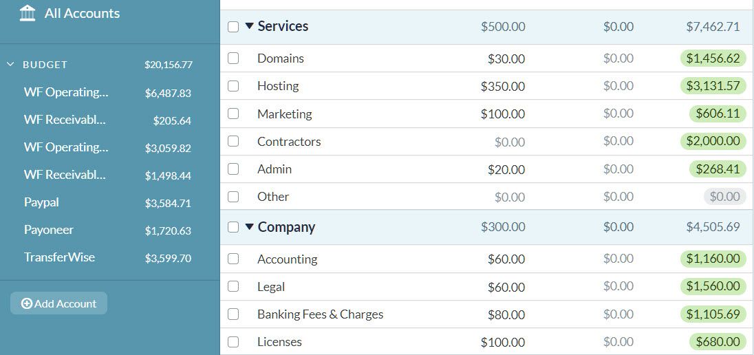 Speaking of my business, I have taken a similar approach to run my company’s finances much earlier. My web publishing company, incorporated in the USA, needs $300 per month on average to operate as a company. That includes accounting, legal and licensing costs. Then it needs $500 more for adequately running the websites. That includes web hosting, domain management, marketing, and administration fees.