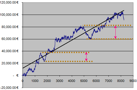 The drawdown is usually a number of bets (for a fixed stake of €500 the above maximum drawdown represents a loss of more than 40 bets) or a percentage of the bankroll.