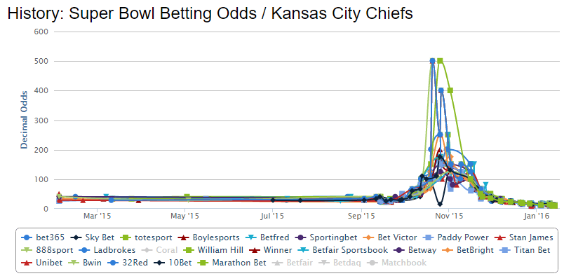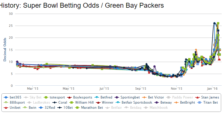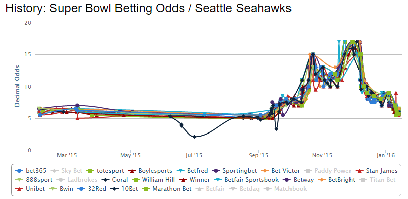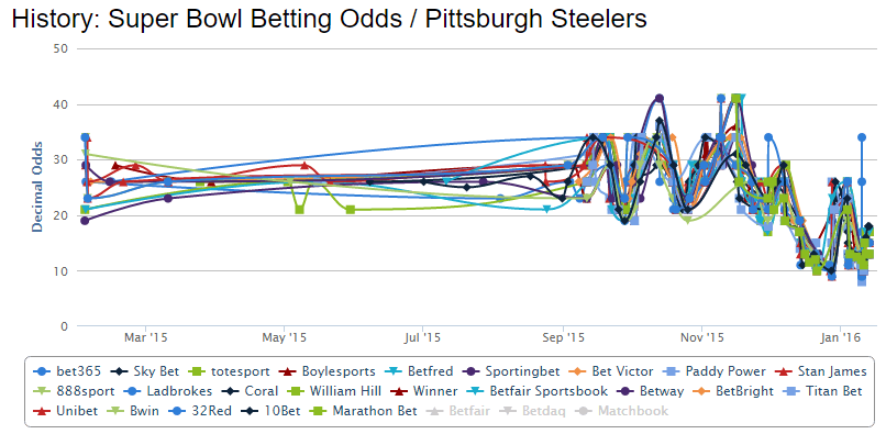 As this post is becoming quite long, I’ll be taking a pause here and will come back tomorrow with the odds action for the four favorite teams to win the Super Bowl 50.