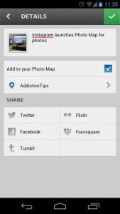 - But, before you click on that share/done button, activate sharing on Facebook, Twitter and Flickr. Your photo will appear on these social media as well.