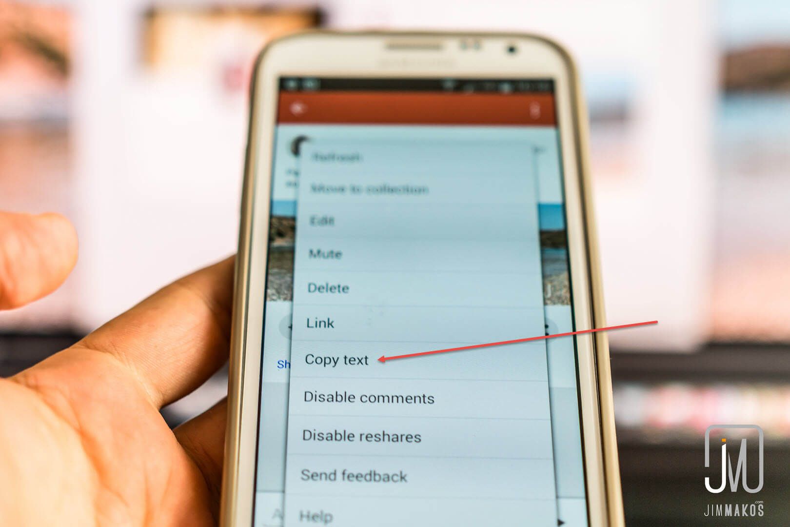 - Using my smartphone then, I pick the photo at Google+ and I share it via Instagram. At the same time, I copy the pic’s description and paste it when sharing on Instagram, so that I don’t repeat the writing.