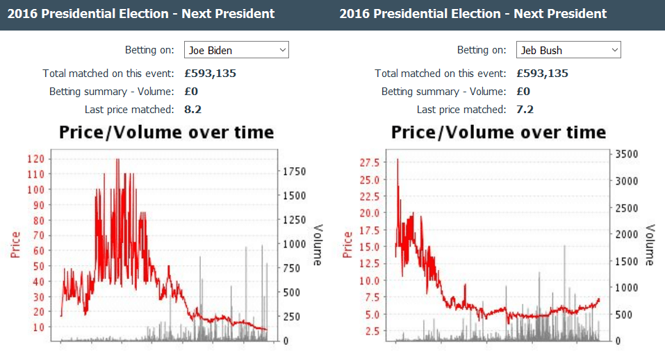 This would come as no surprise if we look closely at the chart of the odds on Jeb Bush at Betfair.